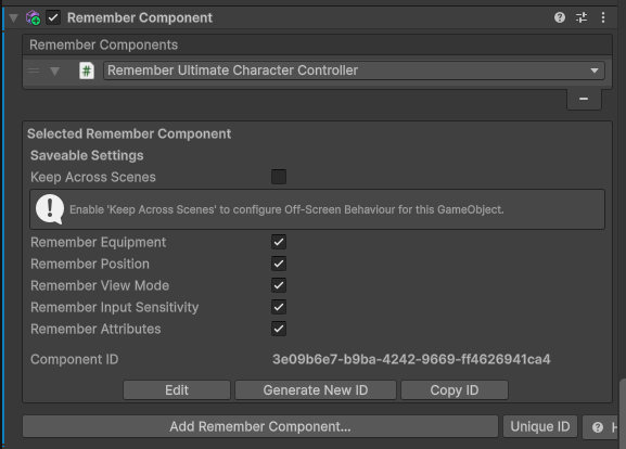 * In the Remember Component’s list, add **Remember Ultimate Character Controller**.
