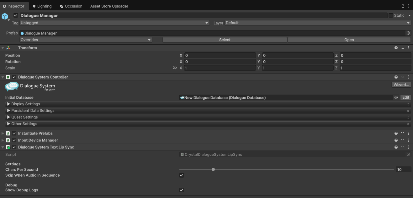 1. Select your **Dialogue Manager** GameObject in the scene hierarchy